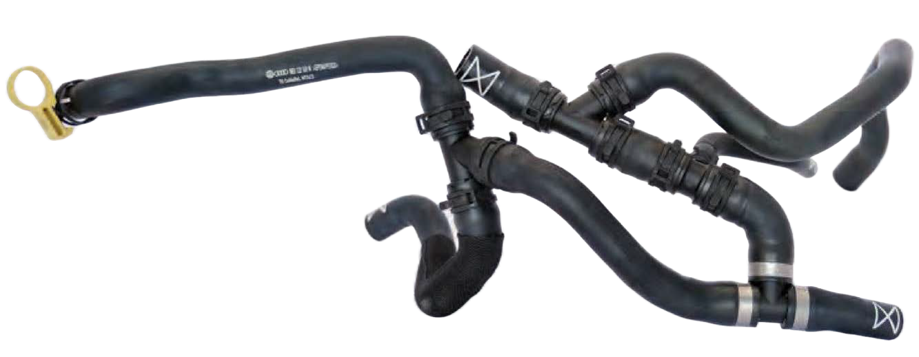These are our products used as cooling system elements in the automotive industry, which are produced as a result of assembling the QC and connector parts, the molds of which we manufacture in our own structure, at certain angles after the straight diameter raw hose produced in the extrusion line with the specially mixed (EPDM-FKM-AEM-AES) raw material is produced by means of an autoclave machine and special form cores.